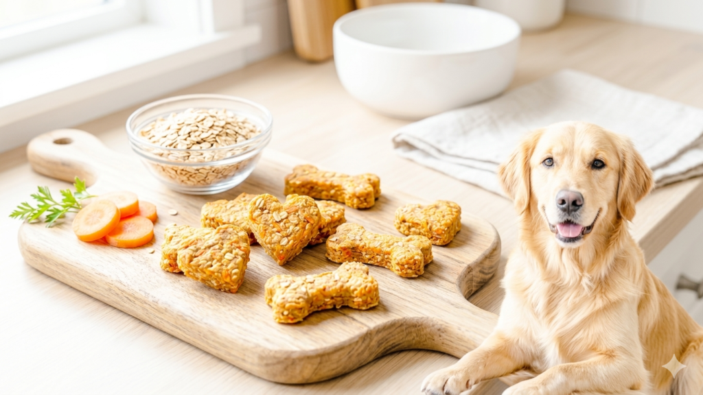 “To get that professional ‘bakery look’ for your Pawsome Carrot Crunch, we highly recommend using a small cookie cutter. We personally love the bone-shaped ones—they are the perfect size for a quick reward and look adorable in a treat jar!”